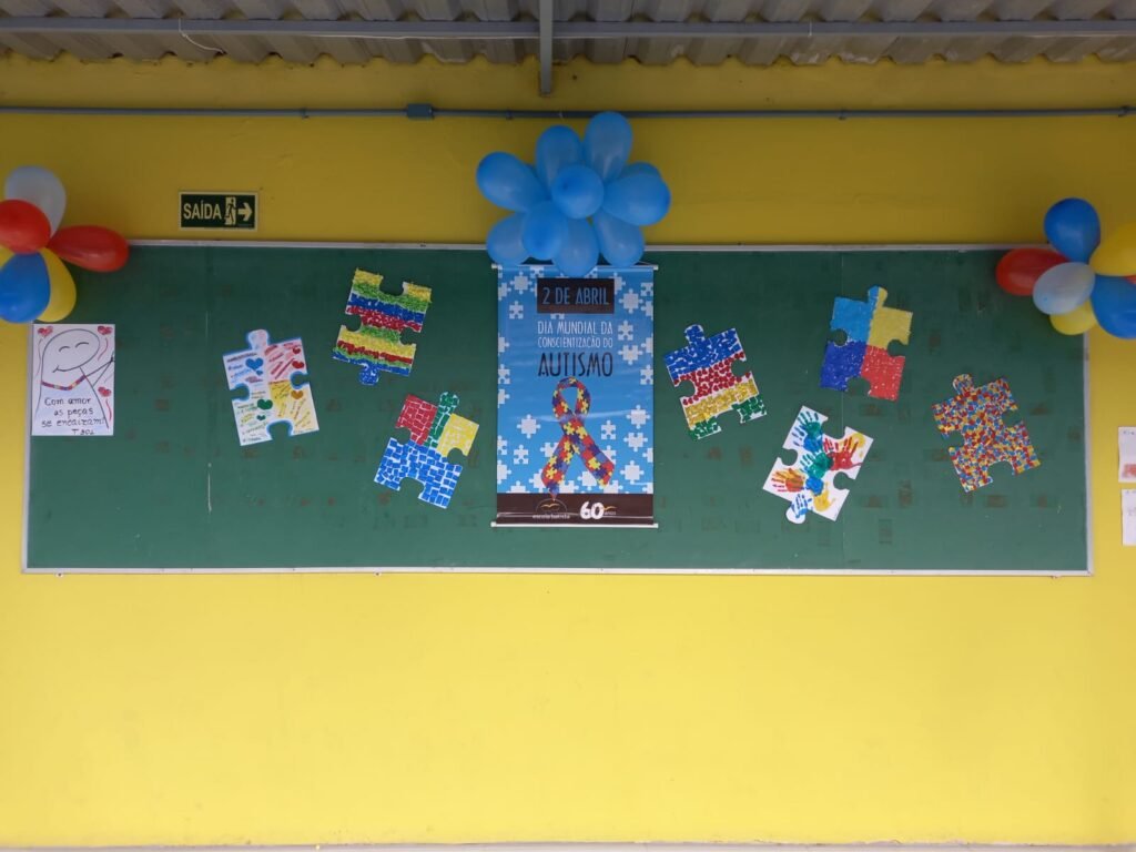 Durante o mês de abril, diferentes ações foram realizadas para a Conscientização do Autismo. A nossa Educadora Especial Fernanda conversou com nossos estudantes do Ensino Fundamental 1 e, partindo de uma ideia da professora Francinne, um mural foi montado com a temática. Além disso, os estudantes do Ensino Fundamental 2 e Ensino Médio pesquisaram sobre o autismo.