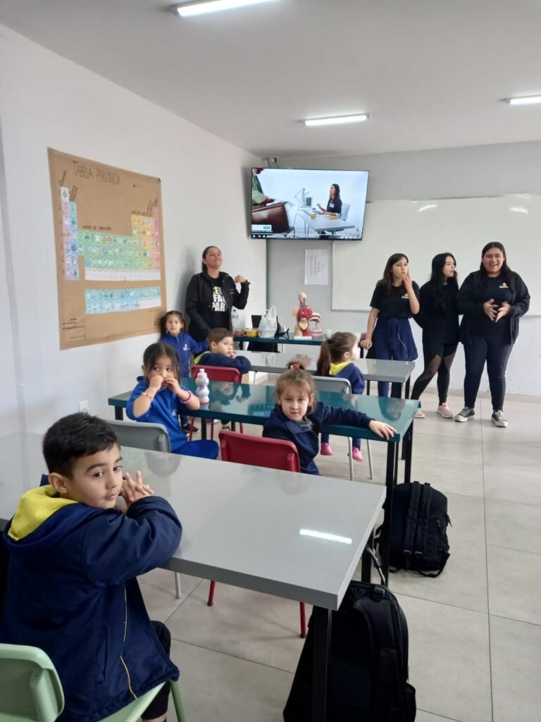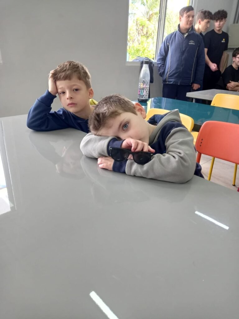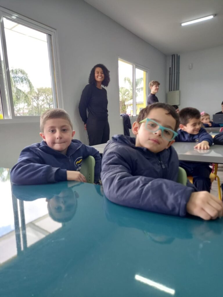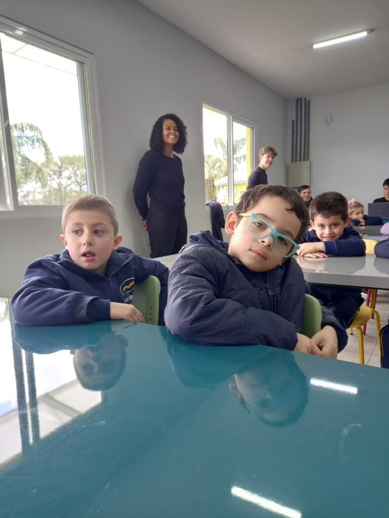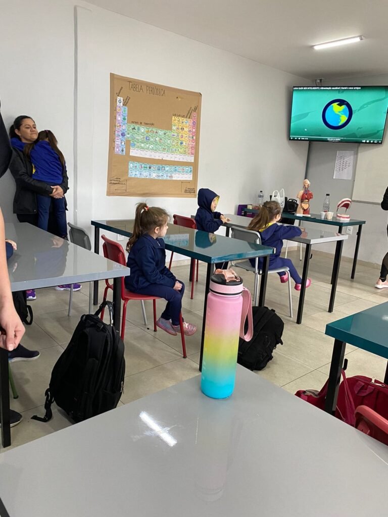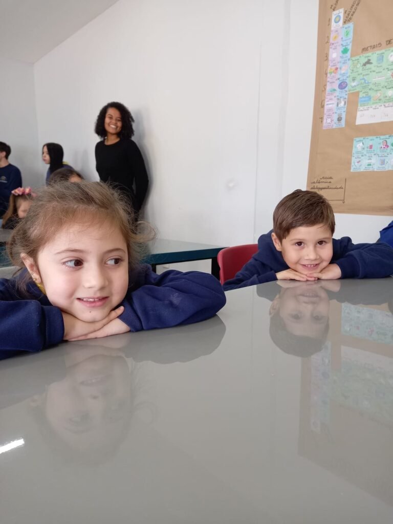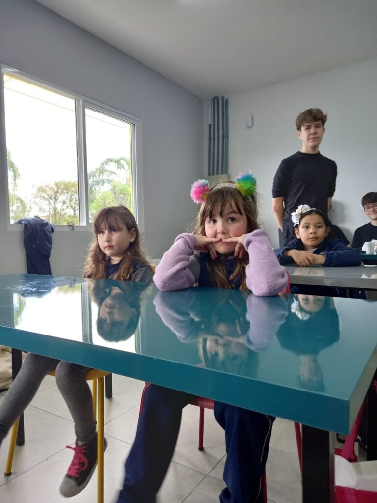 As turmas da Educação Infantil participaram de uma atividade organizada pelos estudantes do Ensino Médio. No Itinerário Biodiversidade e Saúde, sob orientação da professora Leandra, os educandos da turma M10 falaram sobre alimentação saudável e como manter uma boa saúde. Os pequenos ouviram atentamente e participaram, interagindo e experimentando diferentes tipos de frutas.