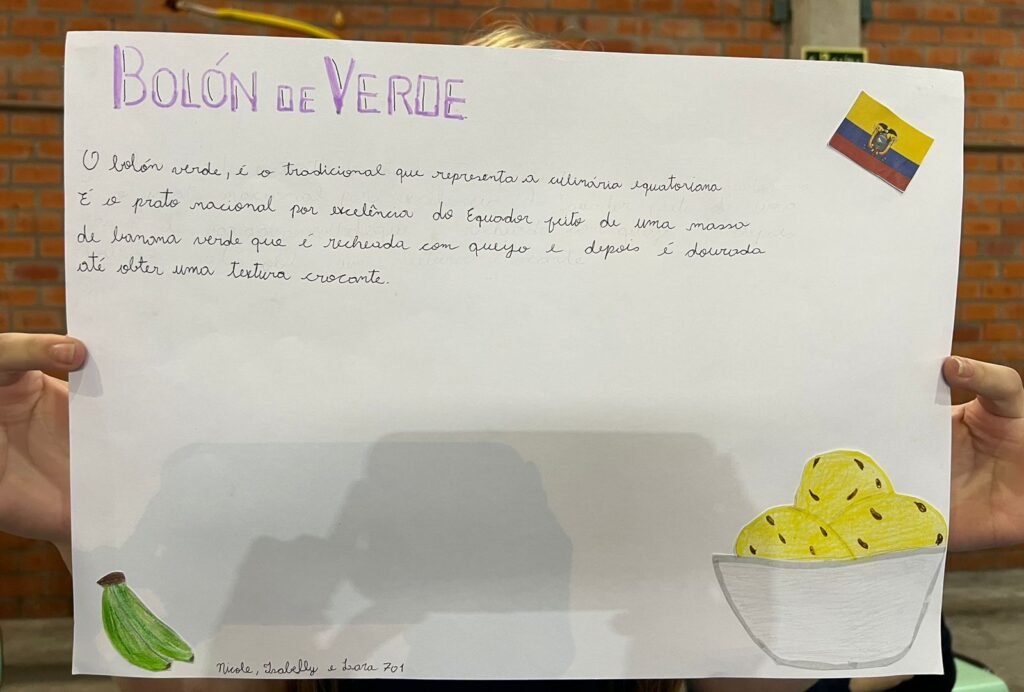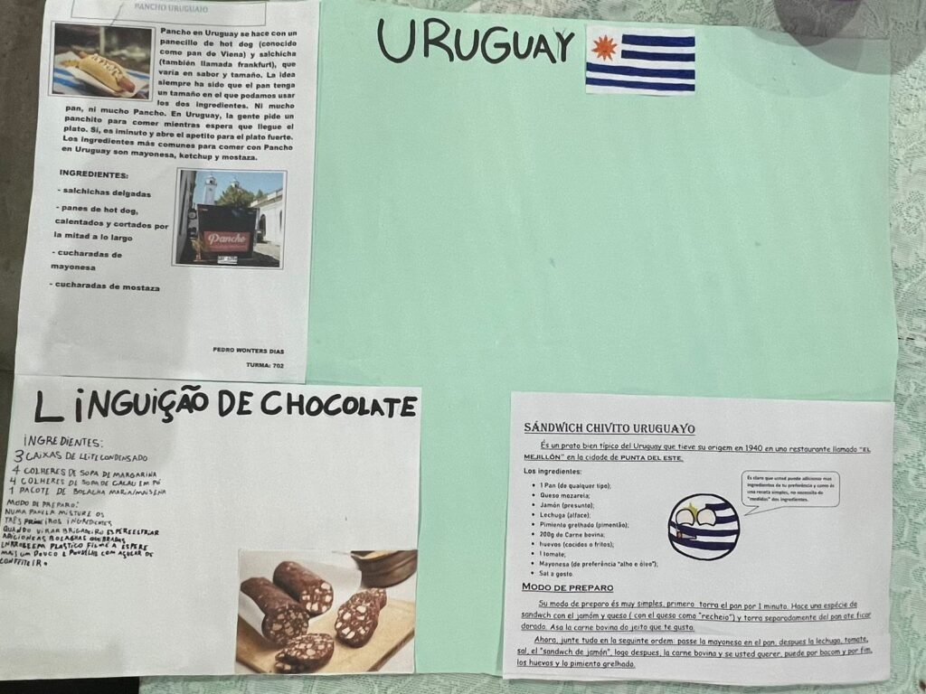 As turmas 701 e 702, na aula de Língua Espanhola, da professora Elisandra, pesquisaram sobre as culinárias típicas dos países de origem hispânica. Para finalizar, produziram diferentes receitas e organizaram uma degustação no colégio.